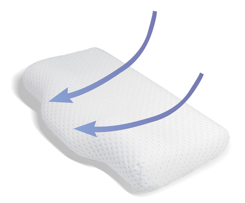 ▶ 親耳洞造型 枕面淺碟型親耳設計,降低側睡耳部壓迫感